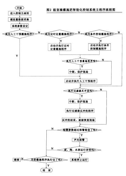 營(yíng)養(yǎng)液施肥控制方式也分為人工干預(yù)、定時(shí)定量、條件控制 種。當(dāng)進(jìn)行營(yíng)養(yǎng)液施肥時(shí),計(jì)算機(jī)系統(tǒng)根據(jù)選定的配方和已設(shè)定好的營(yíng)養(yǎng)液pH、EC值,利用文丘里注肥器進(jìn)行水肥混合,同時(shí)在線實(shí)時(shí)監(jiān)測(cè)混合營(yíng)養(yǎng)液的pH、EC值,根據(jù)pH、EC設(shè)定值與檢測(cè)值之間的偏差來調(diào)整混肥閥的注肥頻率,在短時(shí)間內(nèi)使?fàn)I養(yǎng)液的檢測(cè)值和設(shè)定值之差達(dá)到允許的范圍內(nèi)。當(dāng)一組田間閥門施肥結(jié)束時(shí).先打開下一組閥門,再關(guān)閉正在運(yùn)行的閥門。當(dāng)所有需要施肥的田間閥施肥完畢,先關(guān)閉施肥泵和水泵,再關(guān)閉正在打開的所有閥門,結(jié)束施肥控制。