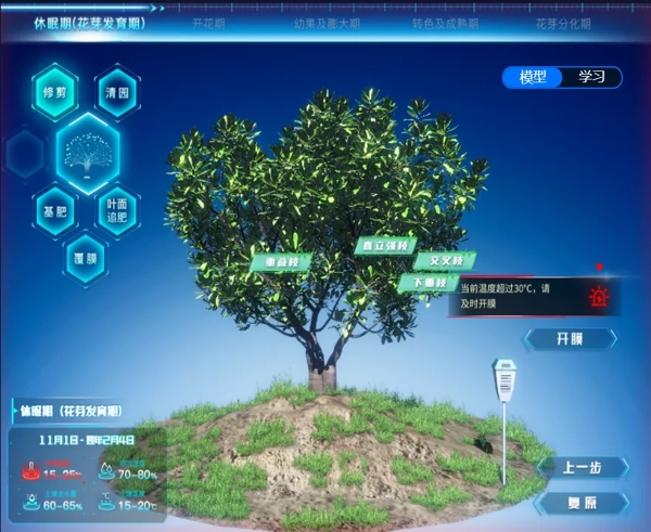 ?????? 運用數(shù)字孿生技術融合楊梅科學化生產(chǎn),利用3D建模、全景拍攝技術和神經(jīng)網(wǎng)絡、大數(shù)據(jù)等技術結合,搭建楊梅“孿生”一棵樹。通過孿生一棵樹將數(shù)字模型與經(jīng)驗數(shù)據(jù)進行匹配、孿生模型與應用培訓進行匹配、物聯(lián)感知與技術指導進行匹配、業(yè)務服務與科學管理進行匹配,結合“e蘭茗果”掌上應用,實時指導梅農(nóng)剪枝、除草、打藥、養(yǎng)護等農(nóng)事行為。