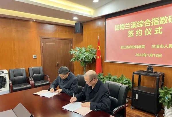 ?????? 省農(nóng)科院副院長戚行江與蘭溪市人民政府副市長陳玉祥簽訂《簽訂楊梅蘭溪綜合指數(shù)研究協(xié)議》,共同加快建立蘭溪楊梅綜合指數(shù)的評價體系,推動楊梅產(chǎn)業(yè)數(shù)字化發(fā)展、智能化管理。