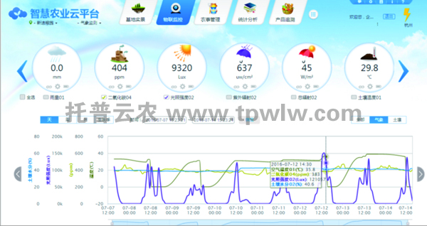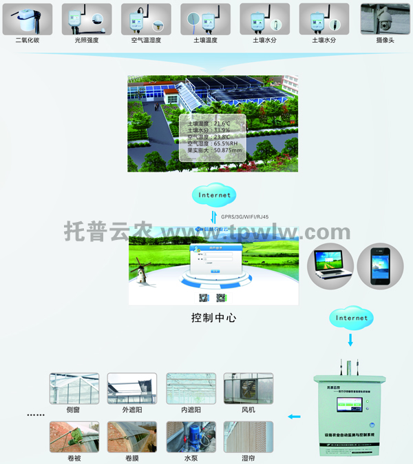 ?????? 2014年上半年,為了加快基地早日實現(xiàn)智能化、規(guī)模化、標準化、容器化生產(chǎn),順應我國園藝生產(chǎn)發(fā)展的方向,德清綠色陽光農(nóng)業(yè)生態(tài)有限公司開始著手于基地種植與托普物聯(lián)網(wǎng)聯(lián)姻。物聯(lián)網(wǎng)系統(tǒng)嚴格的環(huán)境條件與種植條件管控,不僅解決了傳統(tǒng)容器苗生產(chǎn)依靠人工經(jīng)驗管理而產(chǎn)生的誤差問題,同時還減少了人力成本高、縮短了種苗生長周期。??????? 托普云農(nóng)物聯(lián)網(wǎng)系統(tǒng)采集溫室內(nèi)空氣溫濕度、土壤水分、土壤溫度、二氧化碳、光照強度等實時環(huán)境數(shù)據(jù),通過中繼節(jié)點傳輸?shù)娇刂浦行?,由中心平臺系統(tǒng)將最新監(jiān)測數(shù)據(jù)與預先設定適合農(nóng)作物生長的環(huán)境參數(shù)作對比,若出現(xiàn)偏差,計算機會自動發(fā)送至指令,智能啟動與系統(tǒng)相連的通風機、遮陽、加濕、澆灌等設備進行工作,直到各數(shù)據(jù)恢復到正常范圍之內(nèi)。