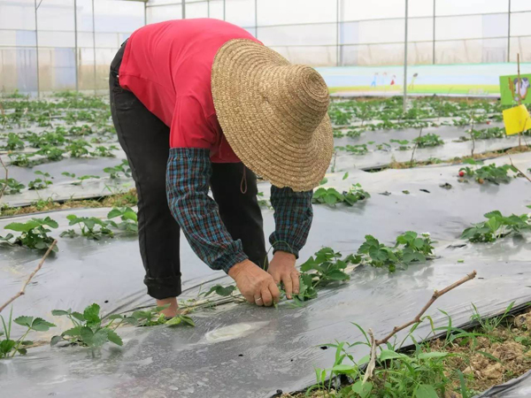 ??? 草莓苗木定植到長(zhǎng)出花蕾后,逐株人工摘除過(guò)多老葉及子芽、腋芽;開(kāi)花結(jié)果后再次摘除莖部變黃的老葉、枯葉,及時(shí)摘除匍匐莖,減少營(yíng)養(yǎng)消耗,同時(shí)除去小分枝及弱小果,提高品質(zhì)。