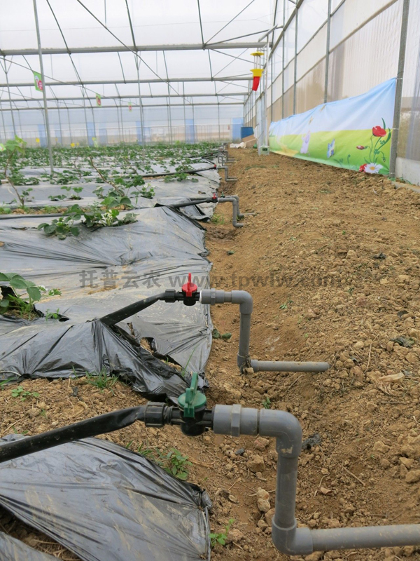 ??? 進(jìn)入二次結(jié)果后,一些草莓出現(xiàn)脫肥現(xiàn)象。此時(shí)如果不加強(qiáng)養(yǎng)分供應(yīng),容易影響到二茬果的產(chǎn)量和品質(zhì)。而且花期又不適宜經(jīng)常噴施葉面施肥,為施肥增加了一定的難度。運(yùn)用托普云農(nóng)水肥一體化滴灌技術(shù),將相應(yīng)階段的有機(jī)肥溶于水中配成溶液,通過(guò)埋在土壤下的管道施肥,并在大棚內(nèi)施放二氧化碳?xì)夥?,有效提高光合作用,及時(shí)補(bǔ)充草莓所需的大量多元微量元素。
