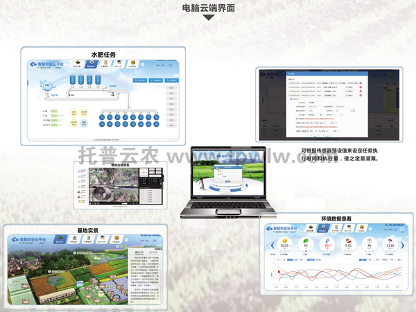 ?????? 可在托普智慧農(nóng)業(yè)云平臺選擇地塊、作物、傳感器等信息,日、周、月查看監(jiān)測數(shù)據(jù),也可設(shè)置作物生長環(huán)境參數(shù)安全閥值,高于或低于設(shè)置時系統(tǒng)會自動預(yù)警;遠(yuǎn)程設(shè)置水肥任務(wù)的時間、次數(shù);遠(yuǎn)程查看溫室內(nèi)的視頻信息,實時掌握溫室內(nèi)的苗情、災(zāi)情信息;可根據(jù)采集的溫室環(huán)境信息,形成數(shù)庫,為合理安排農(nóng)事工作、專家?guī)旖ㄔO(shè)提供數(shù)據(jù)模型;后臺可對種植品種生成二維碼,一鍵追溯生長環(huán)境信息、施肥施藥信息、成長相冊、檢測報告等,實現(xiàn)對作物品種的全程可追溯;可接入專家系統(tǒng),可為基地種植人員提供水肥精準(zhǔn)化管理、病蟲害綠色防控等農(nóng)技指導(dǎo)、診斷與交流,保障農(nóng)業(yè)高產(chǎn)高效。