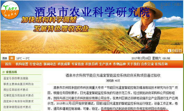 酒泉市農(nóng)科院節(jié)能日光溫室智能監(jiān)控系統(tǒng)政府采購項目通過驗收