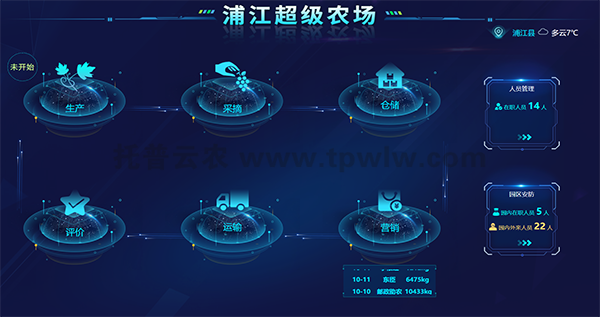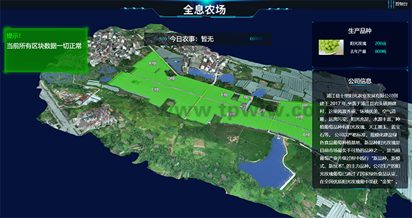 作為智慧農(nóng)業(yè)的升級(jí)版本,“超級(jí)農(nóng)場(chǎng)”項(xiàng)目對(duì)生產(chǎn)經(jīng)營(yíng)管理等每一個(gè)環(huán)節(jié),都進(jìn)行了嚴(yán)格的監(jiān)管,數(shù)據(jù)采集,實(shí)時(shí)監(jiān)測(cè)。通過(guò)無(wú)人機(jī)的航拍,實(shí)現(xiàn)了對(duì)整個(gè)農(nóng)場(chǎng)的3D建模,把整個(gè)農(nóng)場(chǎng)分成A—K,差不多11個(gè)區(qū)塊,然后進(jìn)行區(qū)塊的數(shù)字化監(jiān)控。一塊電子顯示屏就可看到農(nóng)場(chǎng)的所有狀況,葡萄園11個(gè)鋼架大棚所有環(huán)境信息,包括溫度、濕度、土壤酸堿值、光照等情況都呈現(xiàn)在屏幕上。另外,葡萄園里各處分布了多少攝像頭,有多少在職人員,多少外來(lái)人員,也都能一目了然。
