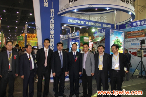 參展期間,來到托普展位的參觀者絡(luò)繹不絕,托普的工作人員一直忙于為參觀者介紹儀器功能特點、分發(fā)產(chǎn)品資料。正當工作人員忙碌地接待參觀者時,農(nóng)業(yè)部種植業(yè)管理司副司長何才文,全國農(nóng)業(yè)技術(shù)推廣服務(wù)中心主任陳生斗、黨委書記杭大鵬、副主任栗鐵申等一行領(lǐng)導(dǎo)來到托普展臺參觀。陳渝陽總經(jīng)理親自接待并為領(lǐng)導(dǎo)介紹此次托普展覽的儀器。