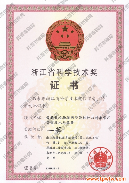 - 托普儀器科研項(xiàng)目榮獲2012年省科技獎(jiǎng)一等獎(jiǎng)發(fā)表日期:2013-08-20 來(lái)源:托普云農(nóng) 瀏覽次數(shù):20396次為了鼓勵(lì)科學(xué)技術(shù)創(chuàng)新,促進(jìn)科學(xué)技術(shù)進(jìn)步和社會(huì)經(jīng)濟(jì)發(fā)展,根據(jù)《浙江省科學(xué)技術(shù)獎(jiǎng)勵(lì)辦法》,托普儀器的科研項(xiàng)目——《設(shè)施栽培物聯(lián)網(wǎng)智能監(jiān)控與精準(zhǔn)管理關(guān)鍵技術(shù)與裝備》,經(jīng)過省科學(xué)技術(shù)評(píng)審委員會(huì)審定,被評(píng)為2012年度浙江省科學(xué)技術(shù)獎(jiǎng)一等獎(jiǎng)。