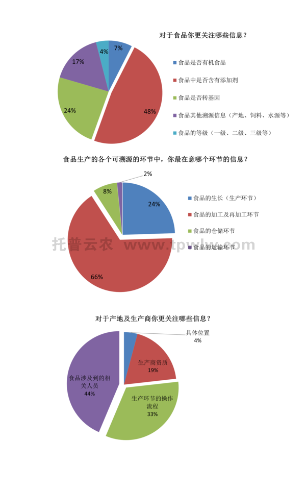 除此之外,也有不少人表示對(duì)食物生長(zhǎng)信息比較在意。食品中是否含有添加劑、是否轉(zhuǎn)基因等信息也是人們關(guān)注的重點(diǎn)。對(duì)于食品生產(chǎn)地和生產(chǎn)商,人們更關(guān)注生產(chǎn)(生長(zhǎng))環(huán)節(jié)的操作流程和食品涉及到的相關(guān)人員的信息。