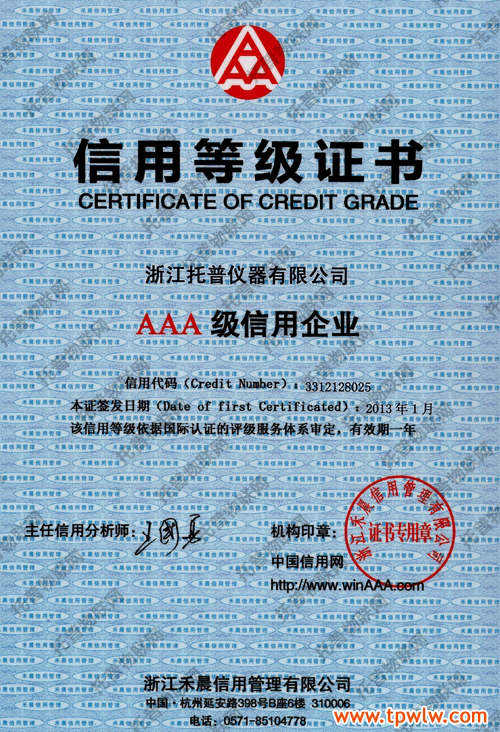 - 熱烈祝賀托普儀器獲得AAA級(jí)信用企業(yè)稱號(hào)發(fā)表日期:2013-08-21 來(lái)源:托普云農(nóng) 瀏覽次數(shù):4401次