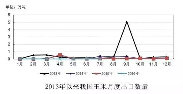 海關(guān)數(shù)據(jù)顯示,7月份我國(guó)玉米出口量為50噸,8月份出口420噸。2015/16年度以來累計(jì)出口0.38萬噸,同比下降66.55%。近年來國(guó)內(nèi)玉米出口維持下降趨勢(shì)。由于頭號(hào)出口大國(guó)美國(guó)玉米下一年度預(yù)計(jì)豐產(chǎn),且出口報(bào)價(jià)較低,2016/17年度我國(guó)玉米出口將非常有限。