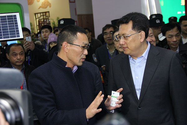 本屆展會(huì)“互聯(lián)網(wǎng)+”成托普云農(nóng)展區(qū)亮點(diǎn),吸引了省領(lǐng)導(dǎo)的目光及浙江衛(wèi)視的關(guān)注。省委副書記袁家軍、省人大常委會(huì)副主任程渭山、副省長孫景淼等領(lǐng)導(dǎo)在工作人員的陪同下參觀了托普云農(nóng)展區(qū)。托普云農(nóng)董事長陳渝陽向袁家軍副書記一行介紹了公司在物聯(lián)網(wǎng)方面取得的階段性進(jìn)展和研發(fā)成果,結(jié)合現(xiàn)場展示的植保信息化系統(tǒng),向袁家軍副書記一行演示了智能農(nóng)業(yè)儀器是如何“+”互聯(lián)網(wǎng)技術(shù)在全天候無人值守的情況下實(shí)現(xiàn)“四情”監(jiān)測的。直接展現(xiàn)了互聯(lián)網(wǎng)產(chǎn)業(yè)與農(nóng)業(yè)產(chǎn)業(yè)融合發(fā)展促進(jìn)傳統(tǒng)農(nóng)業(yè)轉(zhuǎn)型升級的發(fā)展現(xiàn)狀。