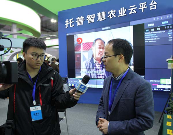 這一番“互聯(lián)網(wǎng)+農(nóng)業(yè)”的介紹也獲得了浙江衛(wèi)視的關(guān)注。記者來到托普云農(nóng)展位,公司副總朱旭華向記者介紹了公司獲得的科研成就及展出的智能化軟硬件系統(tǒng)。主要有:托普云農(nóng)農(nóng)業(yè)“四情”監(jiān)控系統(tǒng)、設(shè)施農(nóng)業(yè)監(jiān)控系統(tǒng)、水肥一體化監(jiān)控系統(tǒng)、智慧農(nóng)業(yè)云平臺等農(nóng)業(yè)物聯(lián)網(wǎng)系統(tǒng)、平臺及土壤墑情監(jiān)控系統(tǒng)硬件、農(nóng)藥殘留速測儀、相關(guān)智能硬件設(shè)備(如遠(yuǎn)程傳輸智能蟲情測報(bào)燈、溫室通、大田六合一無線傳感器、植物本體傳感器)。