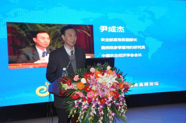 農(nóng)業(yè)部原常務(wù)副部長、國務(wù)院參事室特約研究員、中國農(nóng)業(yè)經(jīng)濟學(xué)會會長尹成杰作大會主旨報告