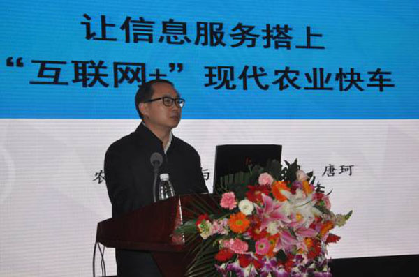 農(nóng)業(yè)部市場信息司唐珂司長以“讓信息服務(wù)搭上‘互聯(lián)網(wǎng)+’現(xiàn)代農(nóng)業(yè)快車”為主題,從“互聯(lián)網(wǎng)+”現(xiàn)代農(nóng)業(yè)相關(guān)政策解讀、農(nóng)業(yè)部“互聯(lián)網(wǎng)+”現(xiàn)代農(nóng)業(yè)行動成效、信息進村入戶工程三個方面作了報告,受到與會代表的熱烈歡迎。