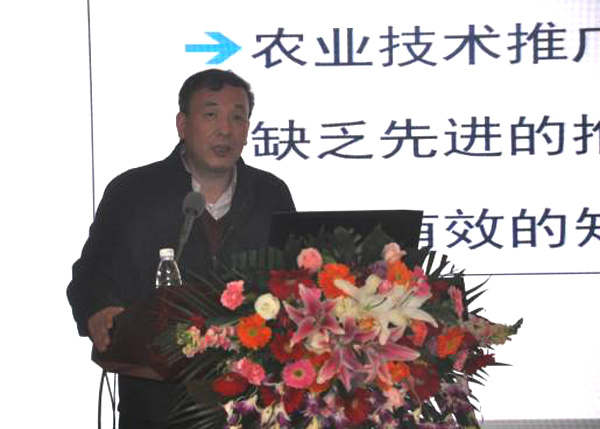 全國農(nóng)業(yè)技術(shù)推廣服務(wù)中心種業(yè)信息與技術(shù)處處長王玉璽作關(guān)于“互聯(lián)網(wǎng)+農(nóng)技推廣如何“落地開花”的思考與探索”的報告