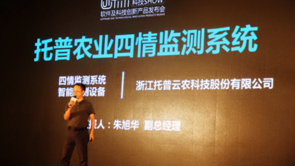 托普云農(nóng)副總經(jīng)理朱旭華在“創(chuàng)未來”軟件及科技創(chuàng)新產(chǎn)品發(fā)布會(huì)現(xiàn)場(chǎng)