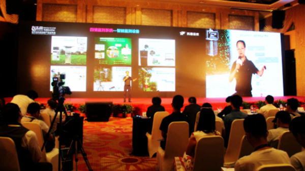 托普云農(nóng)副總經(jīng)理朱旭華在“創(chuàng)未來”軟件及科技創(chuàng)新產(chǎn)品發(fā)布會(huì)上介紹農(nóng)業(yè)四情監(jiān)測(cè)系統(tǒng)
