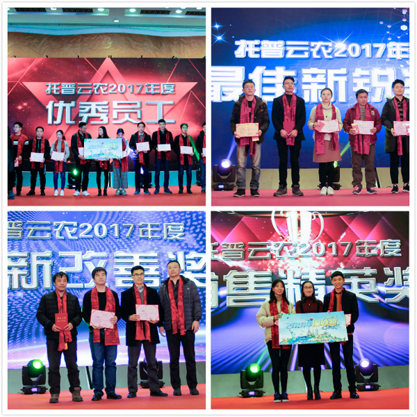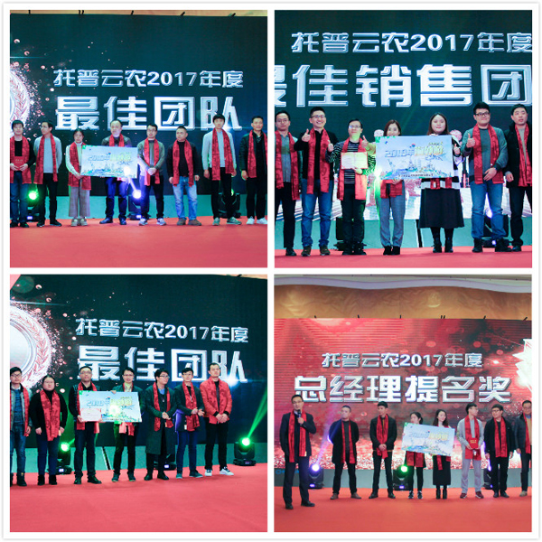 農(nóng)業(yè)信息化是農(nóng)業(yè)現(xiàn)代化發(fā)展的基礎。過去一年,托普云農(nóng)在農(nóng)業(yè)信息化的道路上屢獲農(nóng)業(yè)部門和行業(yè)的認可。憑借前沿的技術(shù)研發(fā)與落地應用能力,先后榮獲世界物聯(lián)網(wǎng)博覽會、匠農(nóng)杯等業(yè)內(nèi)頂級大獎。在榮耀的成績背后,離不開一大批優(yōu)秀員工和團隊的辛勤付出。針對2017年表現(xiàn)突出的團體和個人,現(xiàn)場頒發(fā)出年度銷售精英、創(chuàng)新改善、優(yōu)秀員工獎、最佳新銳獎等個人獎項以及最佳團隊、總經(jīng)理提名等團隊類獎項。