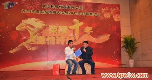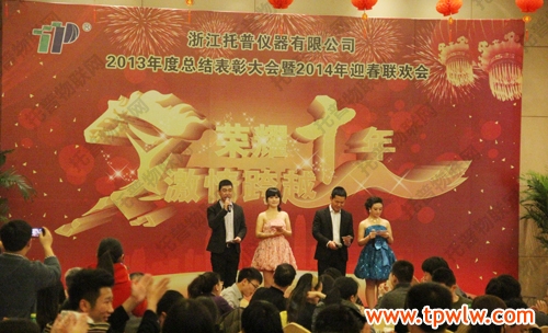 - “榮耀十年、激情跨越”之托普儀器2013年年終晚會發(fā)表日期:2014-01-27 來源:托普云農(nóng) 瀏覽次數(shù):3855次飛雪送蛇歸,駿馬迎春來。2014年1月24日六點(diǎn)整,在一片歡樂祥和的氣氛里,“榮耀十年、激情跨越”之托普儀器2013年年終晚會緩緩拉開序幕。托普儀器260余人的大家庭齊聚一堂,慶祝托普十年華誕,慶祝一年的工作成果,慶祝除舊迎新。晚會伊始,托普儀器陳渝陽總經(jīng)理上臺為本次晚會致開幕詞,為即將到來的馬年向所有托普家人致以新春的問候。