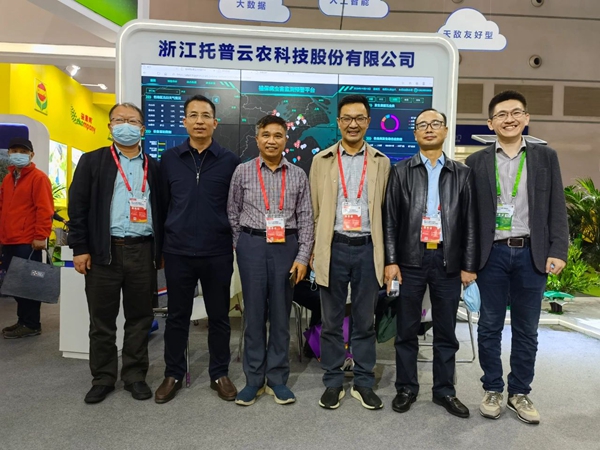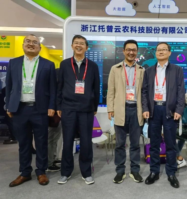 中國工程院康振生院士、全國農(nóng)技中心王福祥副主任、農(nóng)技推廣協(xié)會陳生斗會長、重慶市農(nóng)工委袁德勝委員、全國農(nóng)技中心王鳳樂首席專家等領(lǐng)導一行在托普云農(nóng)展位合影