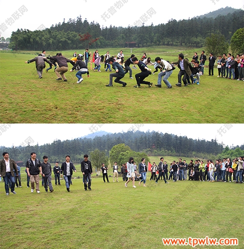 上午的拓展活動在園中翠綠色的大草坪上展開,托普儀器近300人的龐大隊伍被分成了10個小組進行團體比賽。兩場比賽分別為“快樂抱抱爆”和“穿越生死網(wǎng)”,雖然游戲的名字和比賽的方式不同,但同樣都是關于速度與時間的較量。