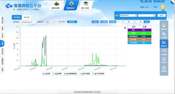 病蟲害監(jiān)測預(yù)警系統(tǒng)通過物聯(lián)網(wǎng)將監(jiān)測數(shù)據(jù)實(shí)時傳輸至云平臺,在云端實(shí)現(xiàn)數(shù)據(jù)分析與管理。通過統(tǒng)計(jì)相應(yīng)的害蟲數(shù)量,結(jié)合時間,地點(diǎn)等相關(guān)信息,可視化展現(xiàn)蟲情發(fā)生走勢圖。利用長期積累的數(shù)據(jù),林業(yè)管理部門通過橫向與縱向?qū)Ρ?,可以挖掘出蟲情爆發(fā)期和害蟲生活習(xí)性等有價值信息,便于對病蟲害未來發(fā)生趨勢進(jìn)行預(yù)測預(yù)報,以及時制定防治方案,有效應(yīng)對重大病蟲害疫情的發(fā)生。