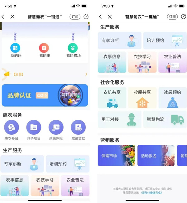 應(yīng)用已經(jīng)在“浙里辦”、“浙政釘”上線。截至目前,注冊用戶10307人,累計服務(wù)6470人次,提供涉農(nóng)咨詢服務(wù)1132次、社會化服務(wù)1910次。這個全國首創(chuàng)的葡萄產(chǎn)品線上品牌管理,已經(jīng)輔助100家農(nóng)戶獲得優(yōu)質(zhì)品牌授權(quán),優(yōu)質(zhì)葡萄追溯碼賦碼2萬余次,助力優(yōu)質(zhì)浦江葡萄銷售5萬余斤,實現(xiàn)均價提高2元以上。