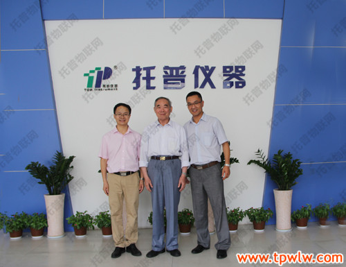 圖為:陳耀邦部長(中)、托普儀器陳渝陽總經(jīng)理(右)、朱旭華副總經(jīng)理(左)合影