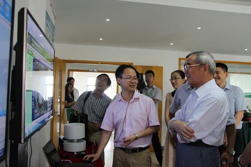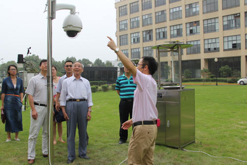 圖為:調(diào)研組查看托普儀器室外監(jiān)測點(diǎn)