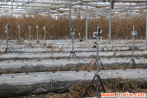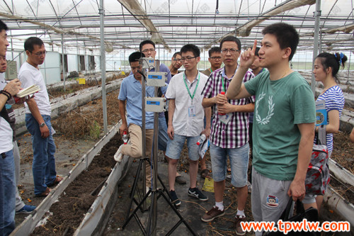 圖為:大棚內(nèi)所種作物????在大田的參觀中,大家看到了工作中的田間氣象站及中繼節(jié)點(diǎn),在檢測(cè)土壤信息的同時(shí),還兼顧測(cè)試氣象情況,為實(shí)現(xiàn)合理化灌溉及用肥提供科學(xué)依據(jù)。