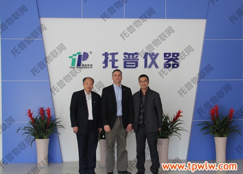 圖為:加拿大泰克資源安德魯·格林教授(中間)、國際鋅協(xié)會(huì)樊明憲教授(左一)與托普儀器陳渝陽總經(jīng)理(右一)合影留念