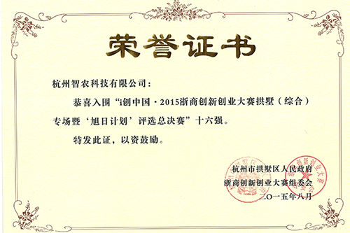 2015年8月5日,i創(chuàng)中國· 2015浙商創(chuàng)新創(chuàng)業(yè)大賽拱墅區(qū)專場暨“旭日計劃”評選總決賽(以下簡稱“浙商創(chuàng)新創(chuàng)業(yè)大賽”)如期舉行。杭州智農科技有限公司參與總決賽,并成功躋身16強之列。