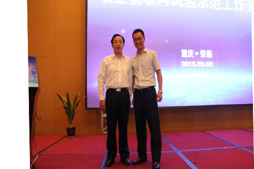 圖為:農(nóng)業(yè)部科教司司長(zhǎng)唐珂(左一)與陳渝陽(yáng)總經(jīng)理(左二)合影