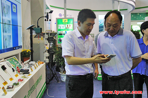 會議期間,安徽省政協(xié)副主席兼省政府秘書長邵國荷先生、安徽農(nóng)委趙穎南總農(nóng)藝師一行蒞臨8號館電子商務(wù)及物聯(lián)網(wǎng)展區(qū)觀摩托普云農(nóng)自主研發(fā)生產(chǎn)的農(nóng)業(yè)物聯(lián)網(wǎng)綜合服務(wù)平臺。重點詢問了托普云農(nóng)所展出的以色列作物本體傳感器和植物營養(yǎng)測定儀等系統(tǒng)設(shè)備的相關(guān)情況。陳曦經(jīng)理為其一一介紹。