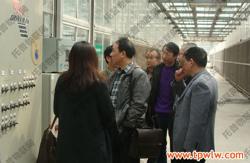 圖為:托普工作人員在介紹通過網(wǎng)絡(luò)來控制種植大棚里的各項指標(biāo),右二:戴守勤副處長