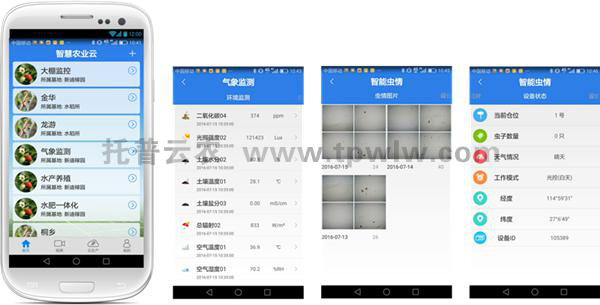 托普病蟲害監(jiān)測預(yù)警系統(tǒng)由蟲情信息自動采集分析系統(tǒng)、孢子信息自動捕捉培養(yǎng)系統(tǒng)、遠(yuǎn)程小氣候信息采集系統(tǒng)、病蟲害遠(yuǎn)程監(jiān)控設(shè)備、害蟲性誘智能測報系統(tǒng)等設(shè)備組成,可自動完成蟲情信息、病菌孢子、農(nóng)林氣象信息的圖像及數(shù)據(jù)采集,并自動上傳至云服務(wù)器,用戶通過網(wǎng)頁、手機(jī)即可聯(lián)合作物管理知識、作物圖庫、災(zāi)害指標(biāo)等模塊,對作物實(shí)時遠(yuǎn)程監(jiān)測與診斷,提供智能化、自動化管理決策,是農(nóng)業(yè)技術(shù)人員管理農(nóng)業(yè)生產(chǎn)的“千里眼”和“聽診器”。