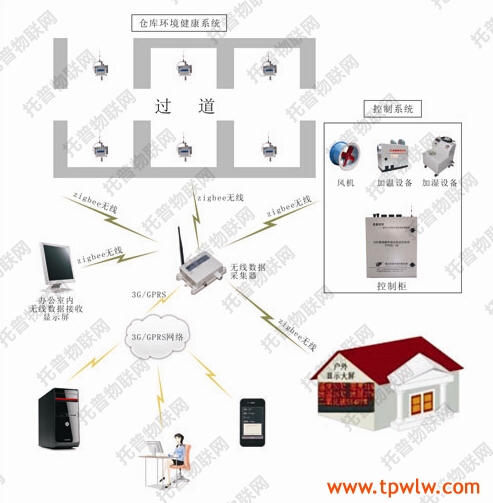 為此,浙江托普云農(nóng)科技股份有限公司潛心研發(fā)了“農(nóng)產(chǎn)品窖藏監(jiān)測(cè)預(yù)警管理系統(tǒng)”,實(shí)現(xiàn)對(duì)倉(cāng)庫(kù)環(huán)境實(shí)時(shí)監(jiān)測(cè),即時(shí)預(yù)警,并能夠自動(dòng)控制通風(fēng)、加溫設(shè)備,確保倉(cāng)儲(chǔ)安全,并對(duì)監(jiān)測(cè)數(shù)據(jù)進(jìn)行科學(xué)分析,進(jìn)而智能匹配農(nóng)產(chǎn)品貯藏的最佳環(huán)境條件,有效預(yù)防和減輕馬鈴薯腐爛,確保安全過冬減少損失,同時(shí)避開上市銷售高峰時(shí)期,實(shí)現(xiàn)反季節(jié)銷售,大幅提高銷售價(jià)格,增加農(nóng)民收入。2、系統(tǒng)架構(gòu)
