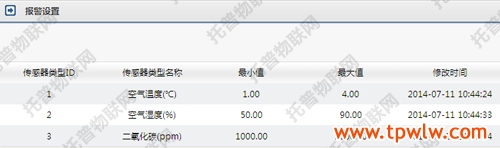 當(dāng)空氣溫/濕度、CO2濃度等環(huán)境監(jiān)測(cè)數(shù)據(jù)超過設(shè)定的預(yù)警值時(shí),系統(tǒng)自動(dòng)預(yù)警,生成預(yù)警事件,通過手機(jī)短信及網(wǎng)頁(yè)報(bào)警提示管理人員或工作人員進(jìn)行管理和控制。該模塊還可對(duì)系統(tǒng)產(chǎn)生的各個(gè)環(huán)境預(yù)警事件進(jìn)行詳細(xì)記錄,便于事后原因分析和對(duì)工作人員工作質(zhì)量進(jìn)行跟蹤監(jiān)督。