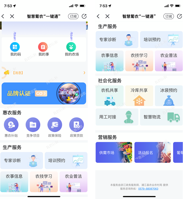 農(nóng)戶可在應(yīng)用中一鍵申請“浦江葡萄”地理標志農(nóng)產(chǎn)品授權(quán),縣農(nóng)業(yè)農(nóng)村局借助AI智能設(shè)備以及葡農(nóng)的“精準畫像”,對種植規(guī)?!?0畝、畝產(chǎn)低于3000斤、葡齡3年以上的農(nóng)戶進行一鍵授權(quán),提升“浦江葡萄”品牌的溢價能力,推動葡農(nóng)控產(chǎn)提質(zhì)。對授權(quán)的品牌產(chǎn)品建立追溯體系,整合葡農(nóng)的農(nóng)場、產(chǎn)品、質(zhì)檢等信息生成溯源碼,通過掃碼即可查詢葡萄從種植到銷售的全鏈條信息。